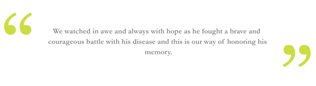 We watched in awe and always with hope as he fought a brave and courageous battle with his disease and this is our way of honoring his memory.